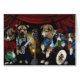 Zeitgenössische Vintage Fotografie mischte mit Geschöpfen und Plätzen von hier und jetzt in den fantasievollen Situationen. Welpen in einem Band mit Instrumenten, Gitarren, Trommel, Frau, Blau, Cityscape, Nachtzeit, fantasievoll, magisch, Vintag, zeitgenössisch, Grafik, Collage,