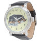 Uhr, Vintage Männeruhr mit schwarzem Lederarmband