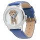 Kinderuhr aus Edelstahl mit blauem Lederarmband