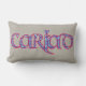 Ein lustiges Lumbalkissen mit dem walisischen Wort "cariad" in keltischer Schrift, gefüllt mit einem hübschen blauen Karo-Muster in rot auf einem hessischen (burlap) Hintergrund. Perfektes Geschenk für das, was Sie Liebe!