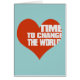 Ein rotes, großes Herzdesign mit dem Zitat: Zeit, die Welt zu verändern