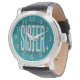 Uhr, Vintage Männeruhr mit schwarzem Lederarmband