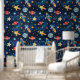 Weltraumbahnhöfe Raketen Planeten Wasserfarben Tapete