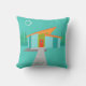 Dieses Space Age Cartoon House Outdoor Pillow ist ein Retro-Liebhaber Traum wahr werden. Das minimalistische Kunstdesign besticht durch ein Aquasteinhaus mit großen, pfauenblauen Fenstern. Vom atomaren, schrägen, orangefarbenen Dach hängt eine gelbe Sputnik-Leuchte, die die Eingangstür beleuchtet. Die rote Vordertür mit Sternexplosion Türknauf wird durch die vertikalen grünen Holzplanken des Eingangs schön verdeckt. Ein grauer Steinweg führt über den unberührten Rasen, der im Mondlicht türkis erscheint. Hinter dem Haus weisen eine Reihe von hohen, dünnen Bäumen auf den türkisfarbenen Himmel und die weiße Silhouette eines Vollmonds hin. Obwohl keine Menschen sichtbar sind, schauen sich die Einwohner des Kitschhauses in einer Nacht wie dieser wahrscheinlich in den Astronauten auf die Nachrichten.