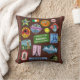 Dieses einzigartige, personalisierte Neuheitskissen wird hergestellt, um wie retro Gepäck auszusehen. Es hat eine lederne Schnallengraphik des Imitats hinunter die Seiten, und es wird in den Bildern der Reiseaufkleber/-abziehbilder von den Reisen um die Welt bedeckt.
