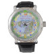 Uhr, Vintage Männeruhr mit schwarzem Lederarmband