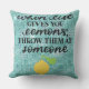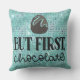 Dieses einzigartige Kissen verfügt über einen aquamarinen Imitat-Glitzer-Hintergrund ergänzt durch einen einzigartigen Text, der lautet: "Wenn das Leben dir Lemons gibt, schmeiße sie auf jemanden" Auf der Rückseite dieses Kissens steht: "Aber zuerst, Schokolade", was es zu einem idealen Design für diese Schokolade und sarkastische Person in deinem Leben macht!