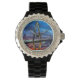 Uhr, Vintage Männeruhr mit schwarzem Lederarmband