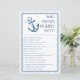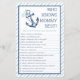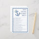 Mit diesem charmanten "Who Knows Mommy Best?"-Spiel können Sie Ihre Babydusche noch etwas unterhalten! Mit einem sanften Aquarellblanker und einer üppigen Vegetation an der Küste ist diese Spielkarte ein perfekter Eisbrecher für Ihre Meeres-, Yachtclub- oder Beach-Babyfeier. Ein lustiger und einfacher Weg, um die Gäste während der Feierlichkeiten zum Lachen und Interagieren zu bringen!