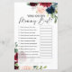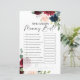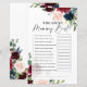Wer kennt Mama am besten? Baby Showspielkarten im boho burgundy Blumenthema