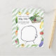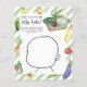 "Auf dem Weg ist ein lokal erwachsenes Baby". Feiern Sie mit diesem Baby-Dusche-Party zum Thema Wasserfarbe! Aquarellkuschel, Zwiebeln, Auberginen, Zucchini, gelbe und rote Tomaten, Rettich, Karotten, heißer Paprika, süß-gelber Paprika, Erbsen und Kohl, Brokkoli und Rüben auf einem Schneidebrett. Bio Wasserfarbenernte.