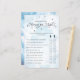 Fügen Sie Ihrer Babydusche etwas Lachen hinzu mit der Spielkarte "Who Said It: Mama or Vater?", die Teil der Sammlung Heaven Sent ist. Dieses Spiel mit einem bezaubernden blauen Himmel und Wolkendesign lädt die Gäste dazu ein zu erraten, ob jede Aussage über das Kind eher von Mama oder Vater zu hören ist. Diese Spielkarte ist perfekt für eine Babydusche mit einem himmlischen Thema. Sie ist eine unterhaltsame und interaktive Art, die Eltern zu feiern. Sehen Sie, wie Freunde und Familie ihre besten Ratschläge geben und die unterhaltsamen Ergebnisse genießen!