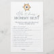 Begleiten Sie uns auf eine herzliche Reise durch Liebe und Vorfreude, während wir die bevorstehende Ankunft unseres kleinen Seemanns mit diesem Nautical Who Knows Mommy Best Baby Shower Game feiern. Dieses bezaubernde Design vereint Ruhe und Einfachheit und lädt Familien ein, sich in fröhlicher Vorfreude auf die neueste Ergänzung ihrer Crew zu treffen. Jeder Pinselstrich von Aquarellfarben zeichnet eine ruhige Szene und ruft Gefühle von Wärme und Ruhe hervor, während sich Liebende versammeln, um an der Begeisterung teilzunehmen. Mit seinem minimalistischen Motiv und seiner beruhigenden Farbpalette schafft das Objekt eine emotionale Verbindung, die Erinnerungen von friedlichen Tagen, die das Wasser verbracht hat, und das Versprechen neuer Anfänge weckt. Matching-Elemente verfügbar.
