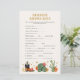 Western Baby Shower Game. Verwandeln Sie Ihre Babydusche mit dem Kinderzimmer Rhyme-Spiel in eine spielerische Feier, in der Spaß und Stil nahtlos kombiniert werden. Die Rückseite jeder Karte zeichnet sich durch ein passendes Muster aus, das der Western Boho Chic Baby Shower Collection nachempfunden ist, sodass Ihre Veranstaltung ebenso kohärent wie unterhaltsam ist. Jedes Element ist so konzipiert, dass es das Thema ergänzt und den Geist der Wüste direkt in Ihre Ansammlung bringt. Lass, dass das Spiel mehr ist als nur eine Aktivität - macht es zu einem unvergesslichen Teil des Erlebnisses Ihrer Gäste und umhüllt es in den einzigartigen Charme Ihrer sorgfältig geplanten Feier. Erleben Sie die Geschichte, die Sie geschrieben haben und in der jedes Detail von sorgfältiger Planung und mühelosen Stil spricht.