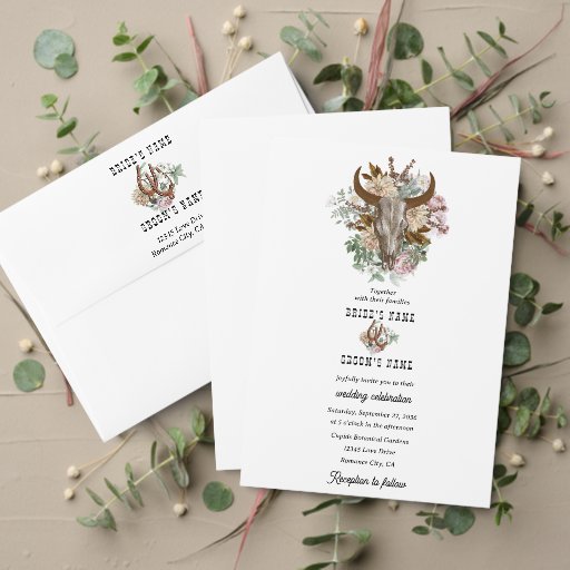 Western Country Cowboy Boho Cow Skull WeddingDesignt von iDove Design