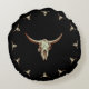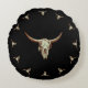 Western Bull Kuh Schädel beige schwarz braun rustikale antike Vintage runde dekorative Kissen. Einzigartiges originelles Landhaus-Landschaftsbild. Cooler Wildwestcowboy . Coole, trendige, landwirtschaftliche Tierkunst.
