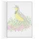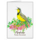 Eine Grußkarte, die mit einer hellgelben Mehlkerze aus Western verziert ist, die auf einer Sebrush-Pflanze mit einer weichen, rosa bitterroot-Wildblume, die mit Tinte gezeichnet und mit Aquarellfarbe gestrichen wurde, vermischt ist. Inspiriert von der Staat Vogel und Staat Blume von Montana.