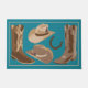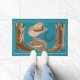 Gehen Sie in den Western und dekorieren Sie mit dieser Türmatte im Rodeo-Stil des Westerns. Das Design umfasst braune und hellbraune Cowboystiefel und einen Western mit Hufeisen auf türkisfarbenem, aquamarin blauen Hintergrund. Dieses Design wurde von Phyllis Dobbs entwickelt und ist mit anderen Farbhintergründen und zur Abstimmung von Produkten in einem Western-Thema für Cowboys oder Cowgirls erhältlich.