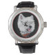 Uhr, Vintage Männeruhr mit schwarzem Lederarmband