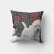 Westhochland-Terrier-tragende Weihnachtsmannmütze steht im Schnee nahe bei einem Snowman mit Text, "ließ ihn schneien." Große Kissen für den Weihnachtsfeiertag.