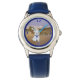 Kinderuhr aus Edelstahl mit blauem Lederarmband