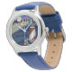 Kinderuhr aus Edelstahl mit blauem Lederarmband