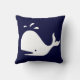 Whales Streifen WEISS auf NAVY BLUE PILLOW Teil des Ozeandekoration Wal WHITE auf NAVY BLUE PILLOW auf einer Seite und NAVY und weißen Streifen auf der Rückseite.
