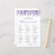 What’s In Your Purse? Bridal Shower Game. This playful activity invites guests to search through their purses and check off items from a fun point-based list, making it an easy and entertaining icebreaker for any bridal shower. The design features delicate lavender and wisteria flowers along the top, adding a soft, elegant touch, while the rest of the layout remains clean and simple.