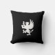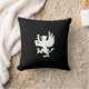 Schwarzes Wurfkissen mit Gänseleber-Silhouette vorne und Greifmuster hinten. Hintergrundfarbe, Größe und Winkel des Musters können geändert werden. Unser Logo ist auf der Rückseite. Sie können sie verschieben oder entfernen.