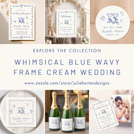 Whimsical Blue Wavy Frame Cream Wedding ReceptionDesignt von Julie Horton