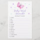 Dieses Baby-Duschspiel ist ein Baby-Wort-Rausch mit 12 Wörtern zu entwirren. Es zeichnet sich durch eine Aquarellschmetterlingskonstruktion aus. Personalisieren Sie den Text auf der Rückseite mit einem Namen. Matching-Produkte verfügbar.