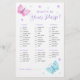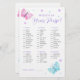 Diese Baby Duschspielkarte ist Was ist in deiner Handtasche? Das Design umfasst Schmetterlinge in Aquarelltönen, Blume und Konfetti-Punkte. Personalisieren Sie die Rückseite der Karten mit einem Namen. Matching-Produkte verfügbar.