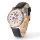 A watch with a cute retro style carousel horse. Drawn in Pretty pink colors with fancy flowers.