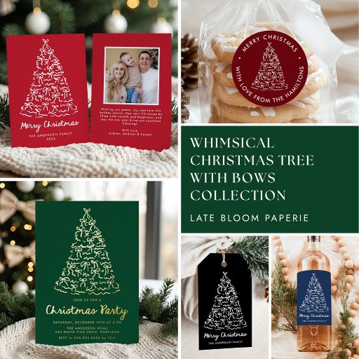 Send warm holiday greetings with these modern Christmas stickers featuring a hand-drawn cream Christmas tree adorned with playful bows on a rich cranberry background. Your custom greeting and family name encircle the tree, creating a cozy yet sophisticated design that stands out beautifully in seasonal mail. Perfect for sealing holiday card envelopes, gifts, and party favors, these stickers add a festive, personalized touch to your Christmas correspondence and celebrations.