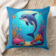 Whimsical Dolphin in einem lebendigen Korallenriff Kissen