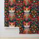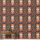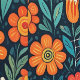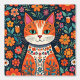 Blaue und orangefarbene Katze und Blume, skurrile ai art.