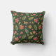 Das Whimsical-Wurfkissen zeichnet sich durch Aquarellfarben-Blume und Blätter auf waldgrünem Hintergrund aus