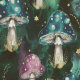 Whimsical Galaxy Pilze auf schwarz Tapete