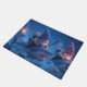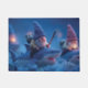 Ein bezauberndes und fantasievolles Bild einer Gruppe von Knorpel, die klassische spitze Hüte tragen und auf dem Rücken der Haie reiten. Die Haie scheinen aus einer funkelnden, schneeähnlichen Substanz zu bestehen, die das zauberhafte Gefühl verstärkt. Die Szene ist Set in einer dunklen, kalten und geheimnisvollen blauen Umgebung mit leuchtenden Lichtern im Hintergrund.