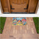 Eine Reihe niedlicher pastellfarbener Häuser in fröhlichen Farben.
