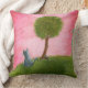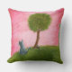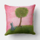 Whimsical Kitty Cat Folk Art Malerei Pink Sky Kissen