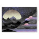 Modern abstract art with dreamy scene of big moon and mountain landscape.