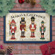 Personalisiert Nutcracker Doormat - Frohe Festtage Herzlich willkommen im festlichen Stil mit diesem personalisierten Nutcracker Doormat. Vier charmante Nutcracker-Soldaten stehen stolz im Zentrum dieses Designs, Set vor einem tiefbeigen Hintergrund mit heiligen Blätter und Beeren. Die Oberseite der Matte ist mit den Worten "Grüße der Jahreszeit" versehen, während der untere Teil einen Raum für Personalisierung bietet, was ihn zu einer einzigartigen Ergänzung Ihrer Urlaubsstimmung macht. Ideal für den Einstieg, fügt diese Türmatte Ihrer Zuhause eine Touch der traditionellen Weihnachtsmagie und -wärme hinzu.