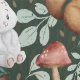 Bezaubernde Waldtiere wie Füchse, Waschbären, Brötchen, Eichhörnchen und ein verspieltes Hirsch, umgeben von weicher Vegetation und Pilzen
