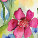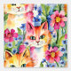 Hübsche skurrile Folklorekunst Aquarellkatzen und Blume in rosa, blau, orange und grün Tapete.