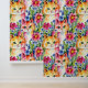 Whimsikfarbene Blume und Katzen farbig Tapete