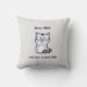 Kissen mit einem lustigen, sarkastischen und einer kleinen, sassy Katze, die sich eindeutig als die bevorzugte Wahl für Zuneigung gegenüber dem Hund erklärt.