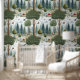 "Umgestalten Sie Ihr Kinderzimmer mit dieser bezaubernden Aquarellwaldtapete mit einer spielerischen Waldlandschaft voller grüner Bäume und bezaubernder Tiere. Ideal, um eine ruhige, naturlich inspirierte Atmosphäre in Kinderzimmern oder Kinderzimmern zu schaffen. Die sanften Farben und das skurrile Design machen diese Tapete zu einer schönen Wahl für den Raum eines jeden Kindes, die Fantasie und die Liebe für die Natur."