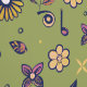 Whimsisches Eule und florale Melodie grün Tapete