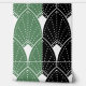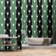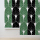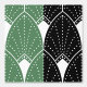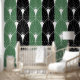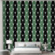White Art Deco Muster auf grünen schwarzen Streife Tapete